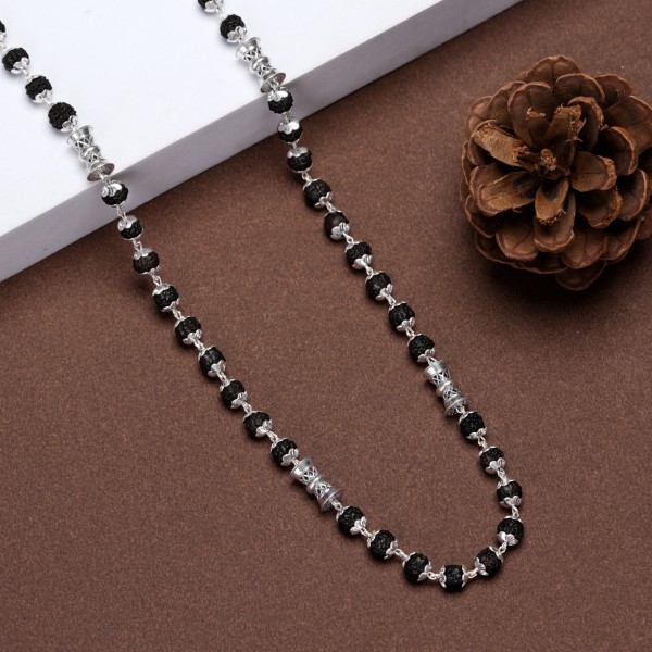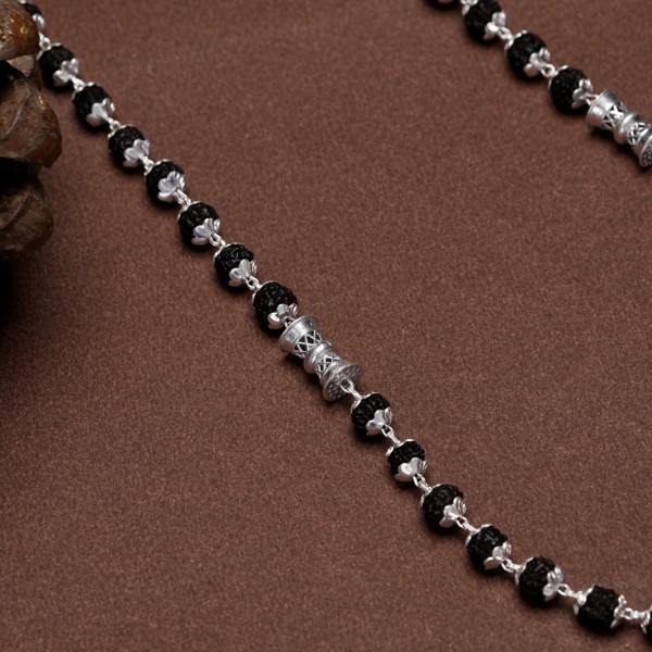 Design | Rudraksha beads alternated with detailed silver elements |